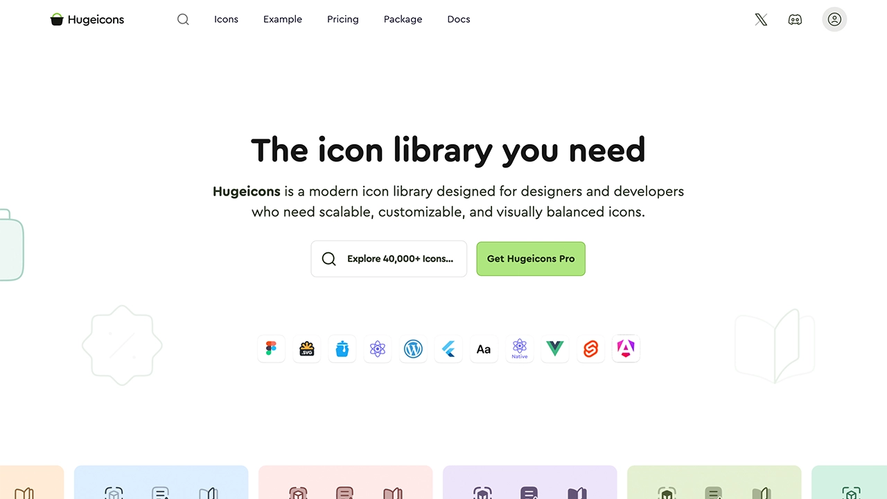 Hugeicons es una plataforma freemium con más de 30.000 iconos en distintos estilos, pensados para diseño de producto digital. Bien organizados y listos para usar.